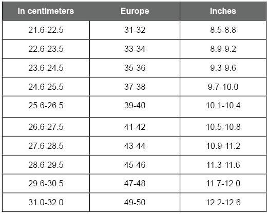 At Ledaerfins we are committed to make your online shopping experience as easy as possible. The best way to make sure that you order the right size is to measure your feet and then compare it with the size chart below to find the appropriate size. Please follow these 4 simple steps to accurately measure your feet: