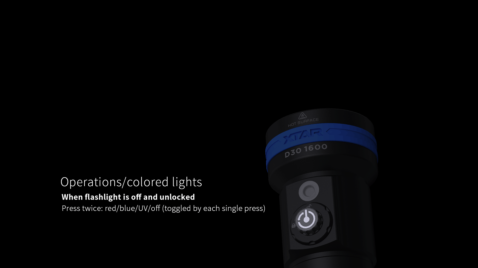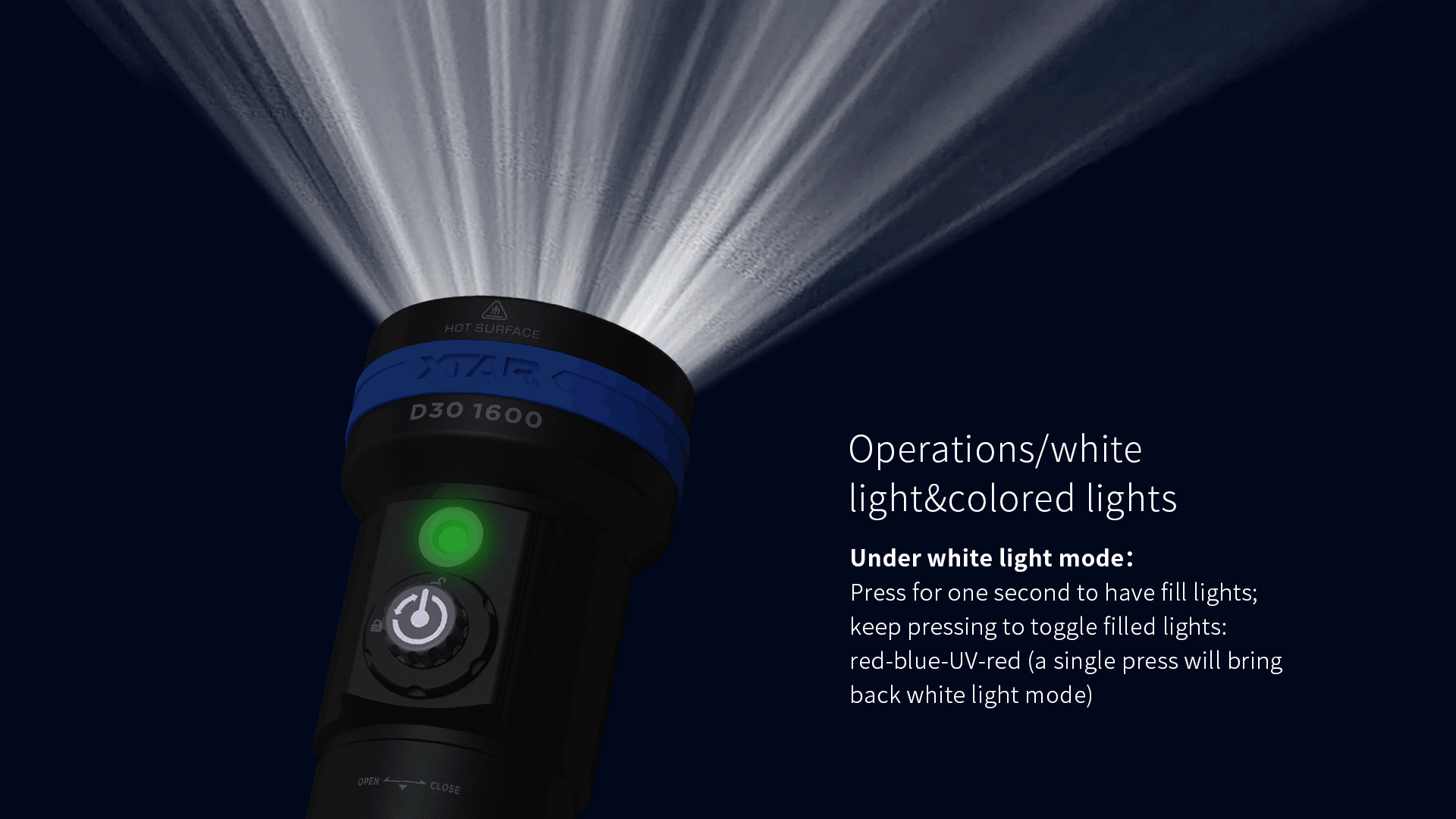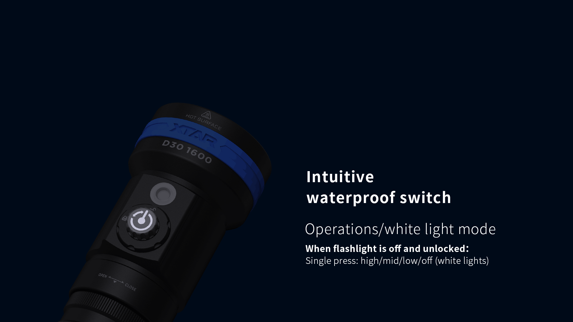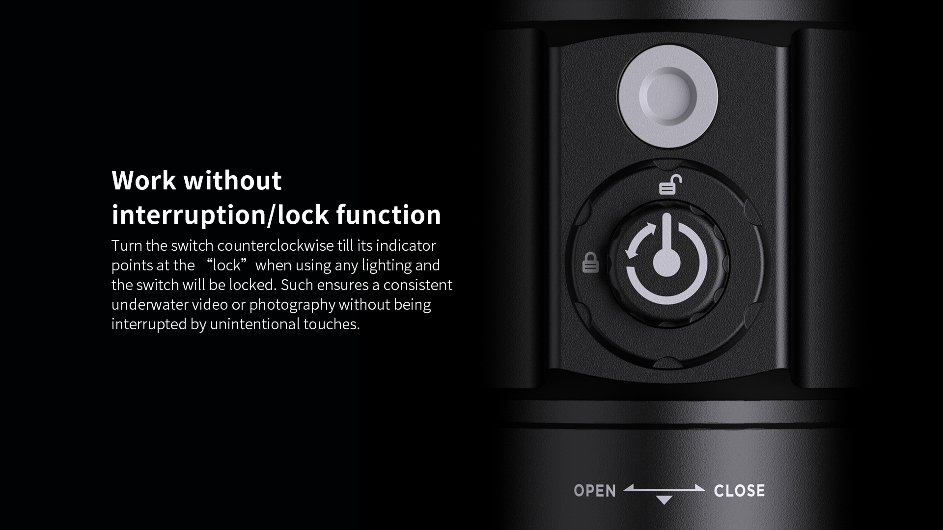 • Press switch, easy to operate. Lock function to avoid accidental turn on/off light.