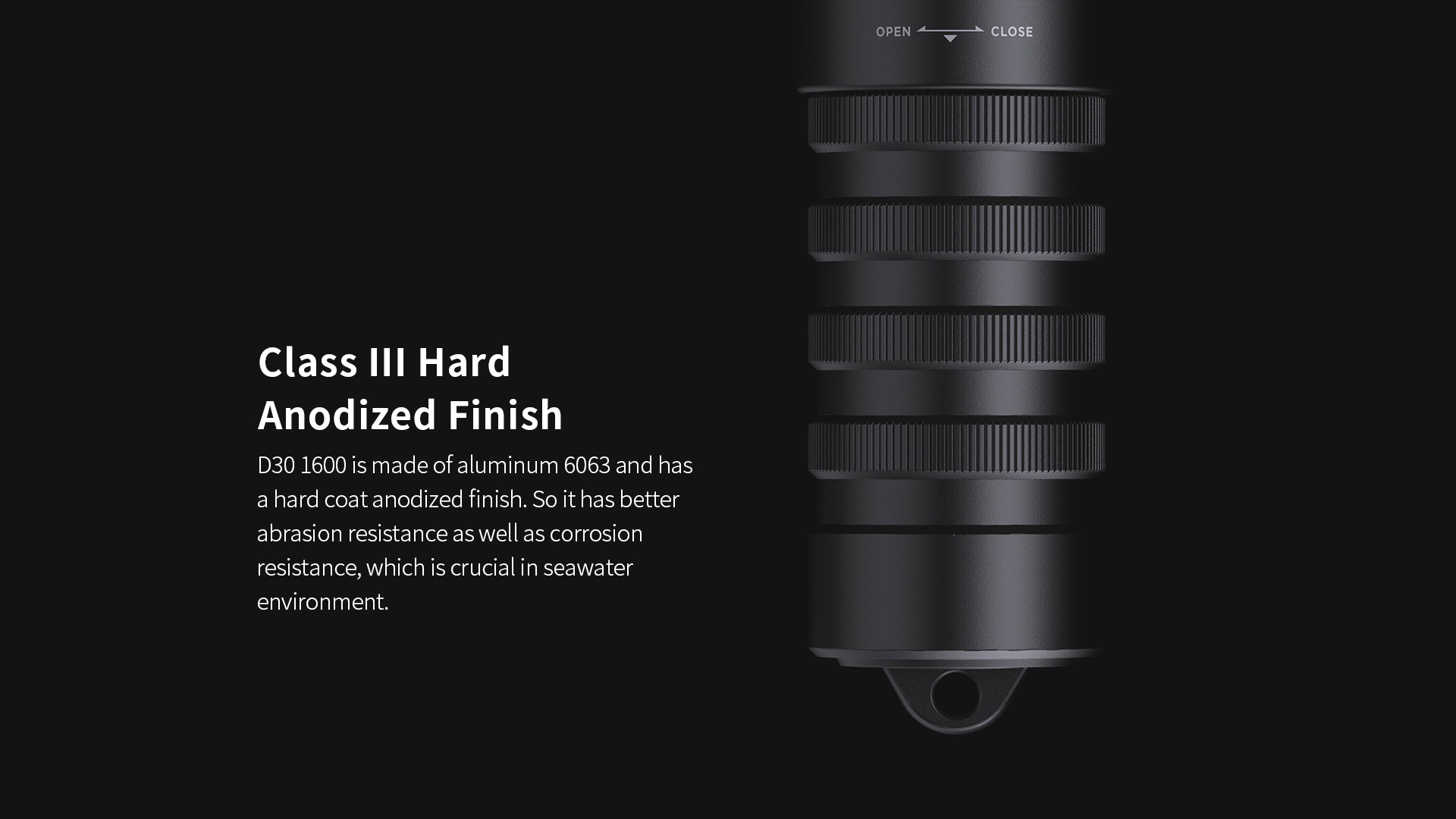 • Class III Hard Anodized Finish, Aluminum 6063 material.