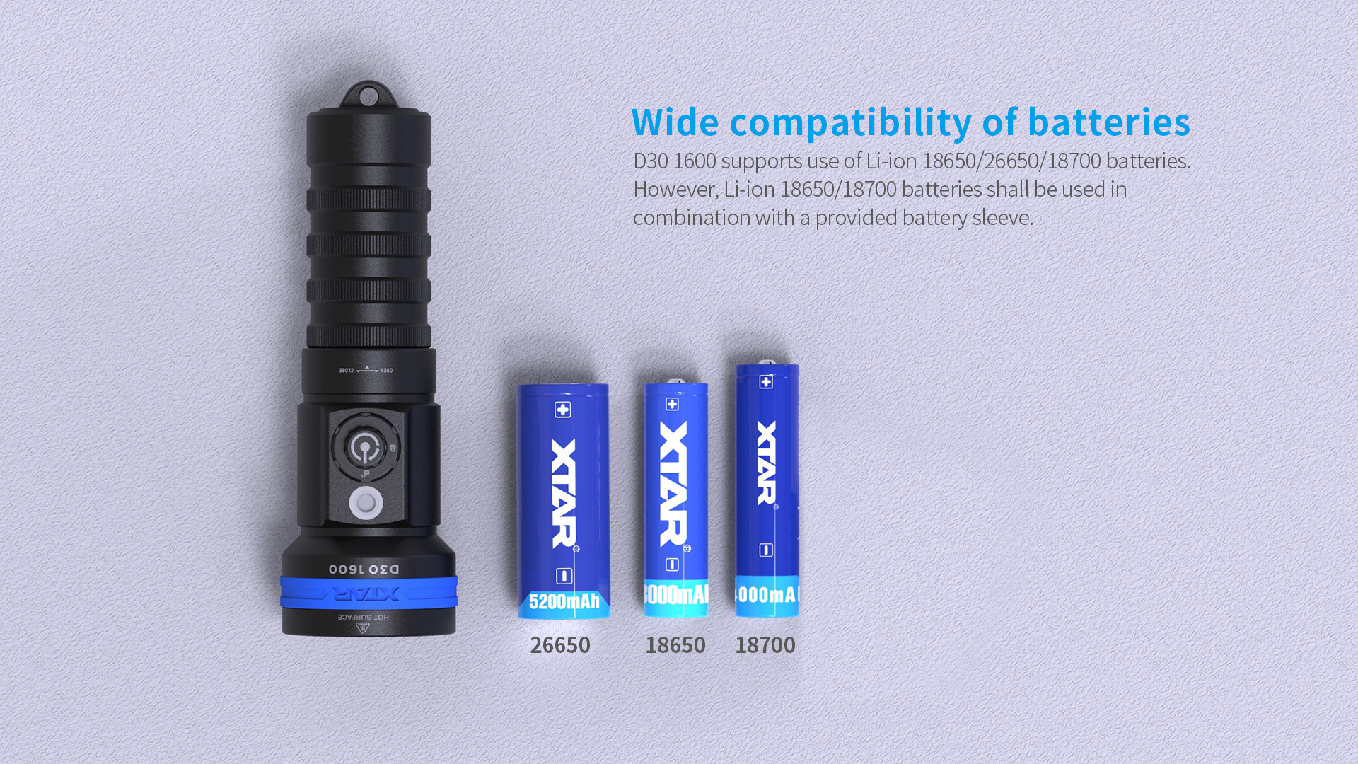 • Powered by 1x18650/26650 battery. A LED power indicator to remind the battery status.