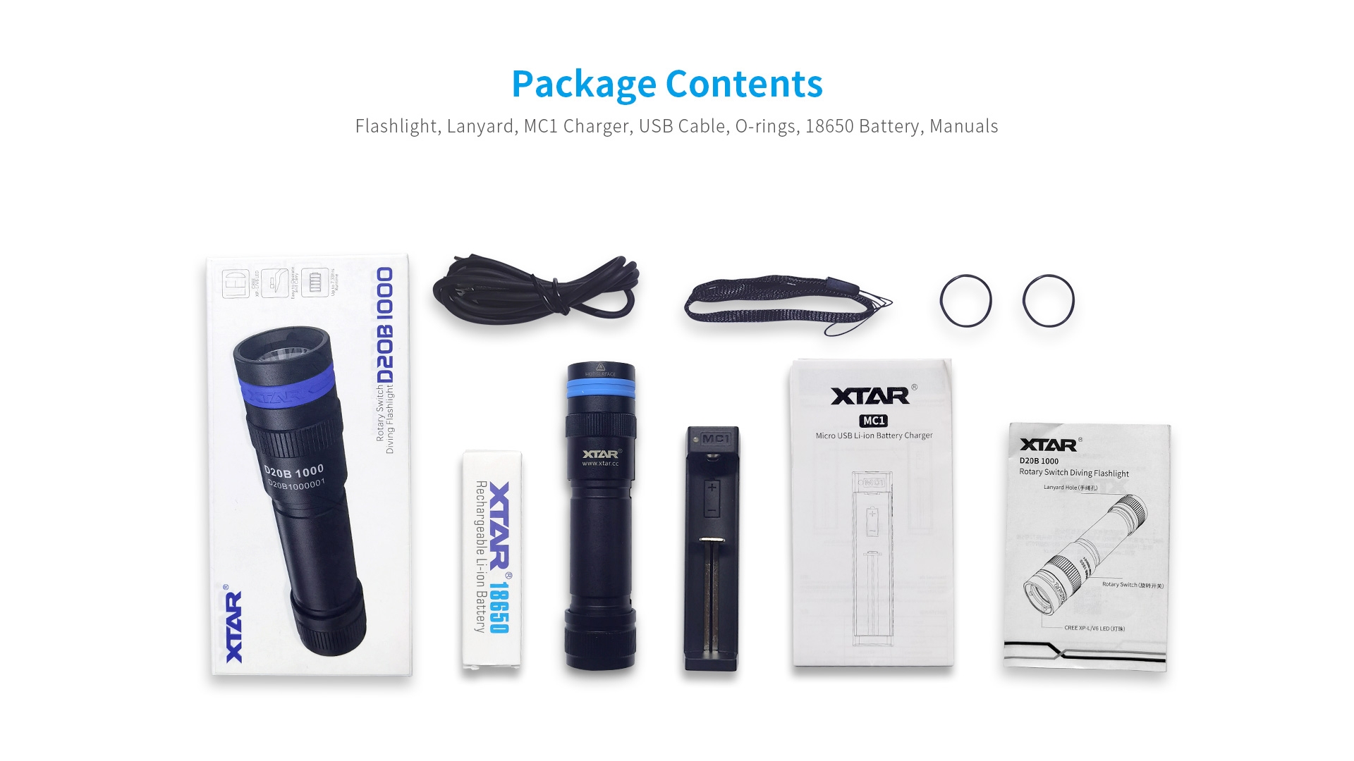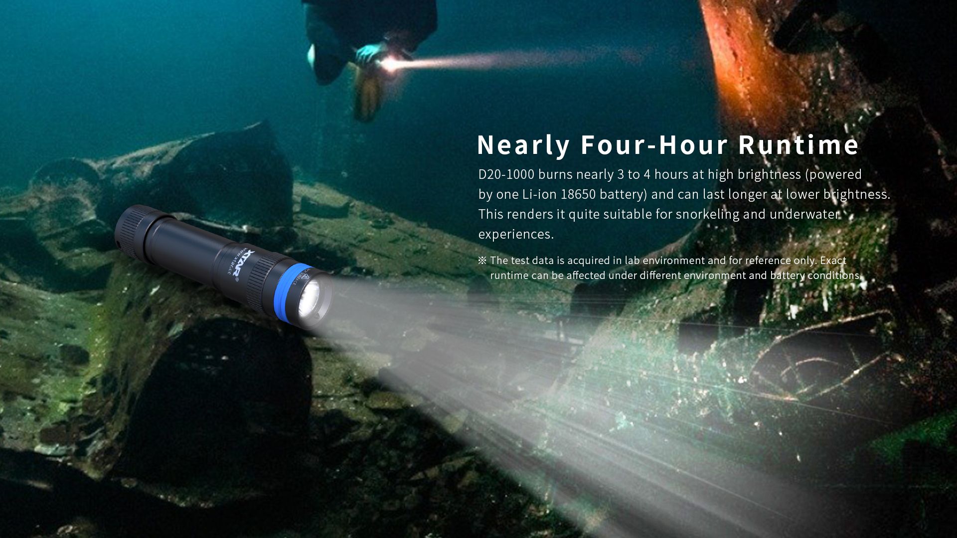 • Three lighting modes: High (1000lm) -Mid (590lm) -SOS (590lm)