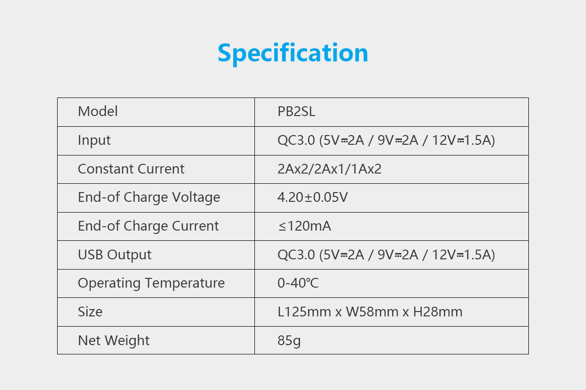 - As a charger: 3hrs nearly fully charge 2 x 21700 5000mAh batteries.