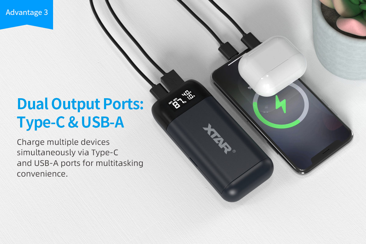 2-in-1 Portable Charger with Power Bank Function