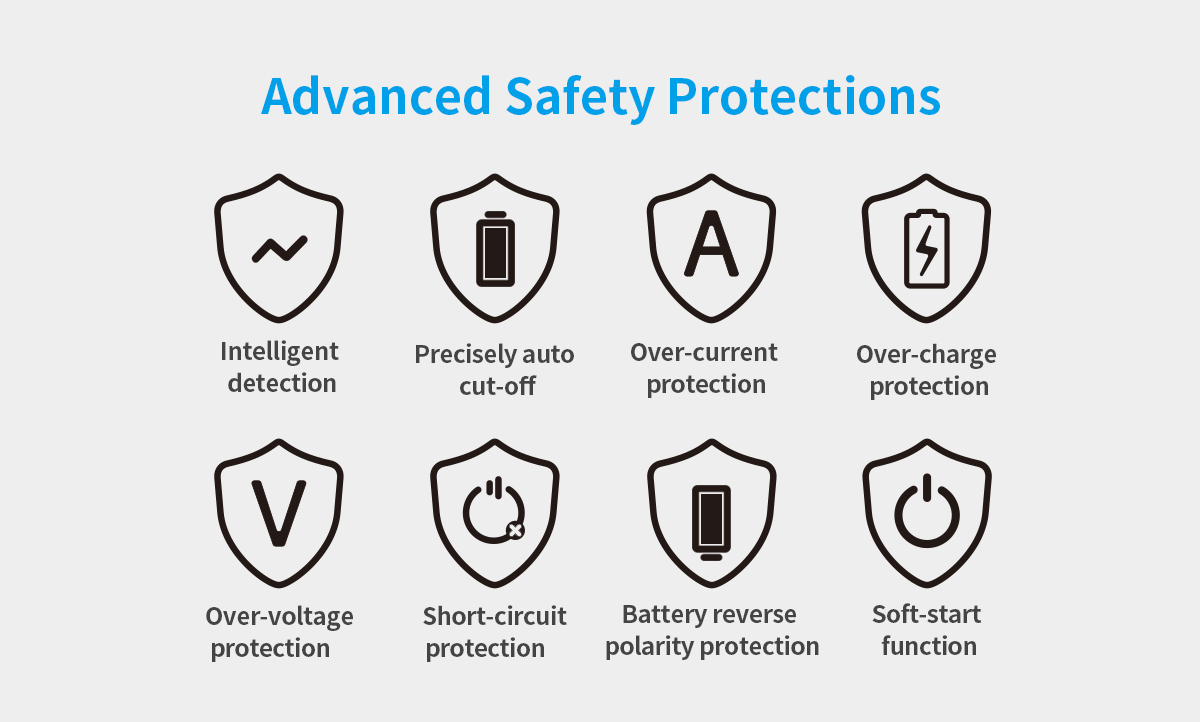 ● Apply to all size of 18650, 18700, 20700, 21700 batteries.