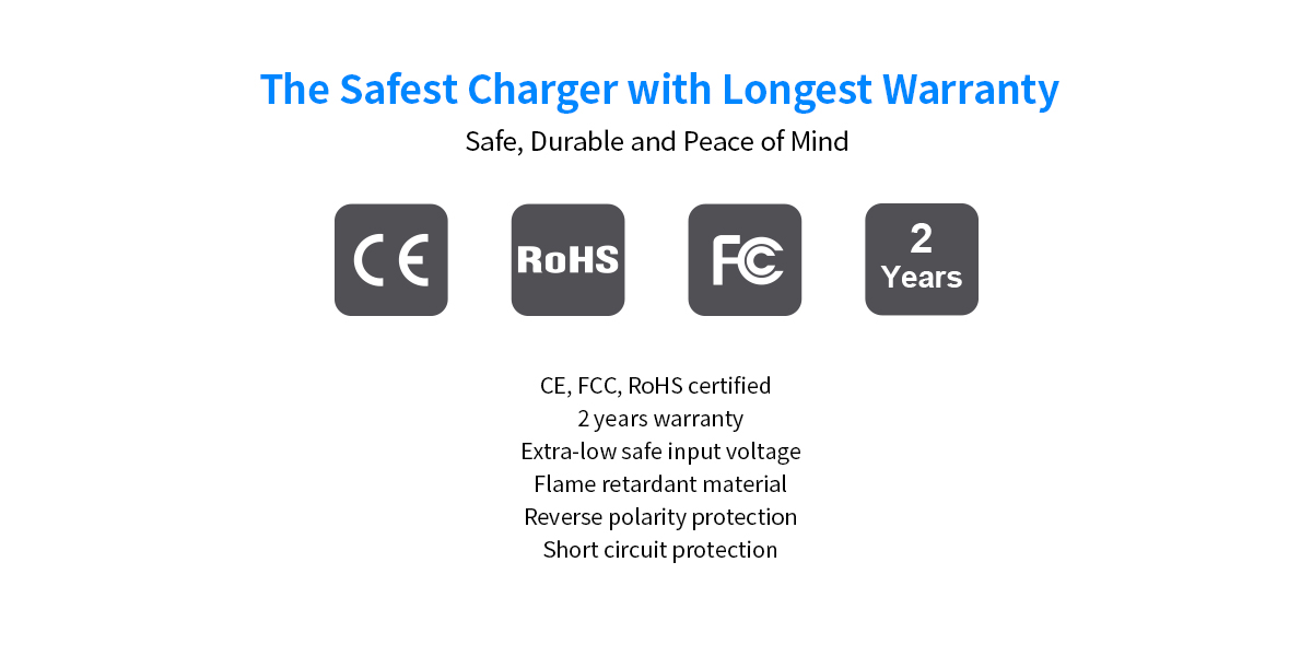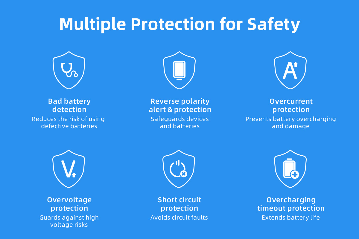 • Smart battery charger with wide capatibility, adjustable charging currents, battery life optimization charging and built-in multiple protections.