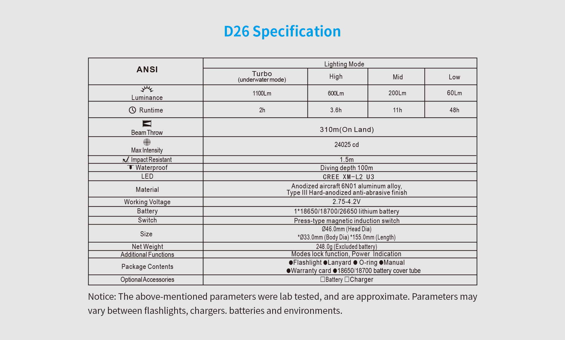 XTAR WHALE D26 L2 U3 Diving Flashlight